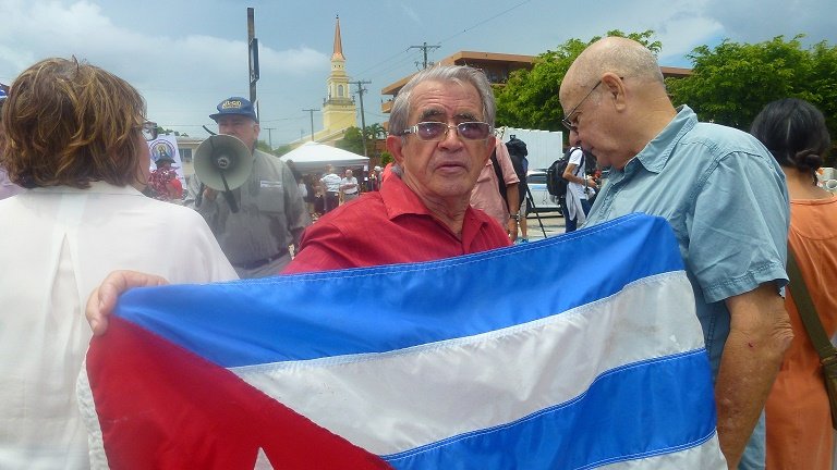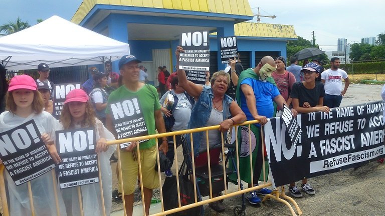 Veamos en un video lo que pasó en horas del mediodía del 16 de junio de 2017 en las afueras del Teatro Manuel Artime mientras Donal Trump, intentaba complacer al exilio histórico de Miami. El verdadero acto fue afuera, no dentro, pero estas imágenes no las trasmitió los también históricos canales, porque mientras Donal Trump hablaba en el Artimes de Miami, la noticia, afuera era otra bien distinta. Vea el testimonió recogido por Hermes América y RadioMiamiTV