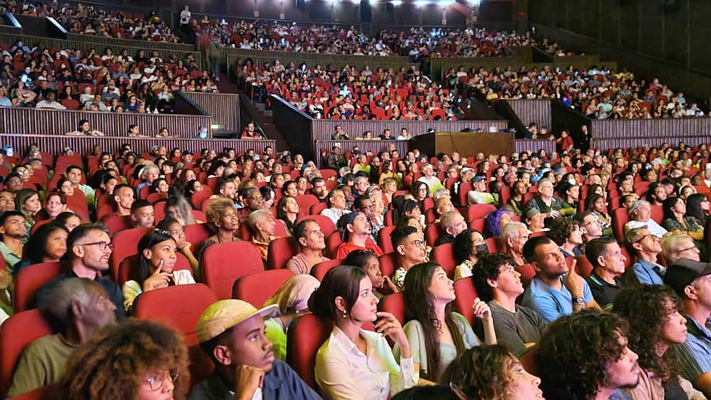 Se respira muy buena energía entre tantos actores, técnicos y productores, que suben a escena para agradecerle a los espectadores su compañía, en esta aventura de sábado que es ver a toda pantalla por primera vez nuestro filme, producido por el ICAIC, y la Productora Audiovisual «i4 Films»