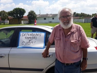 Desafiando un calor sofocante, los integrantes de la caravana, cubanos y otros latinoamericanos, montaron en sus carros engalanados con banderas cubanas, sus luces encendidas, sonando las bocinas de sus carros –formando gran algarabía-, y llevando los letreros con las consignas de ese día, pegados a los costados de sus carros, para dar a conocer sus reclamos.