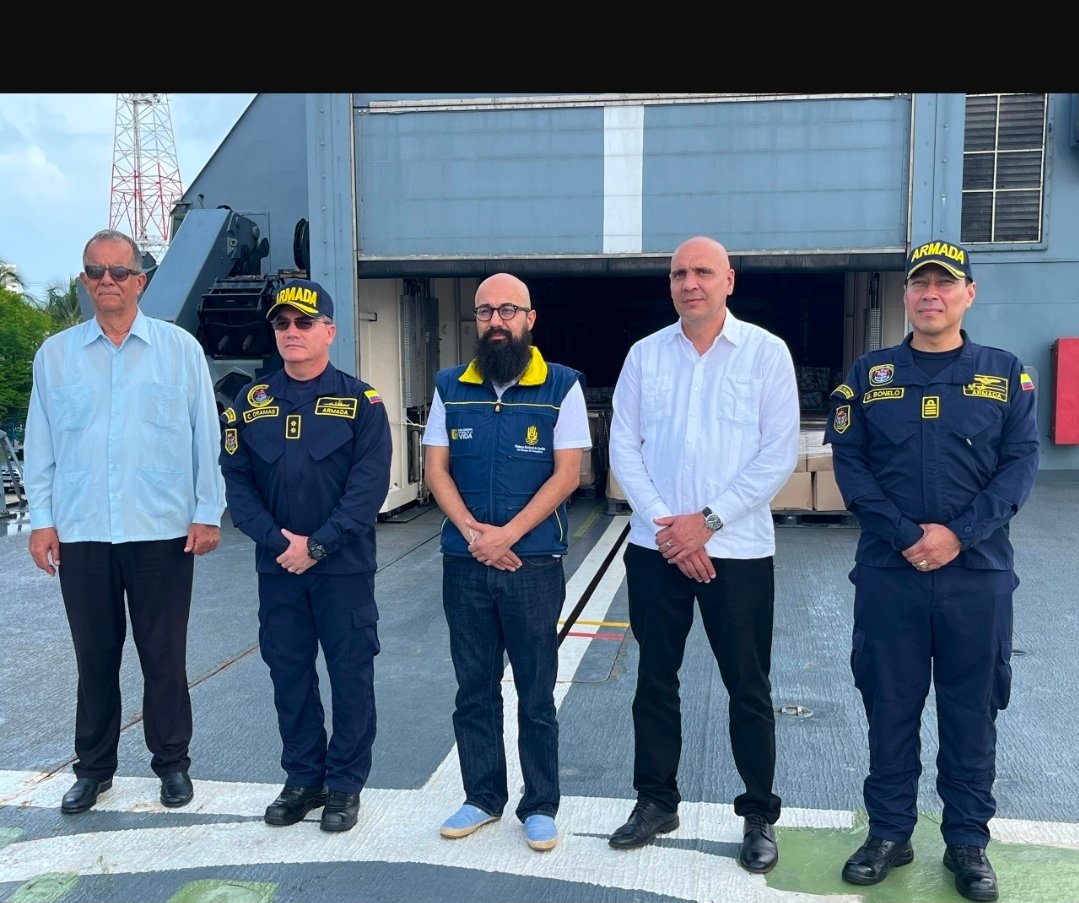 Cartagena de Indias, 3 de noviembre de 2025.- Unas 240 toneladas de ayuda humanitaria para mitigar el impacto provocado en la región oriental de la Mayor de las Antillas por el Huracán Melissa, partieron hoy desde la Base Naval “ARC Bolívar”, como muestra de la solidaridad que une a Cuba y Colombia.