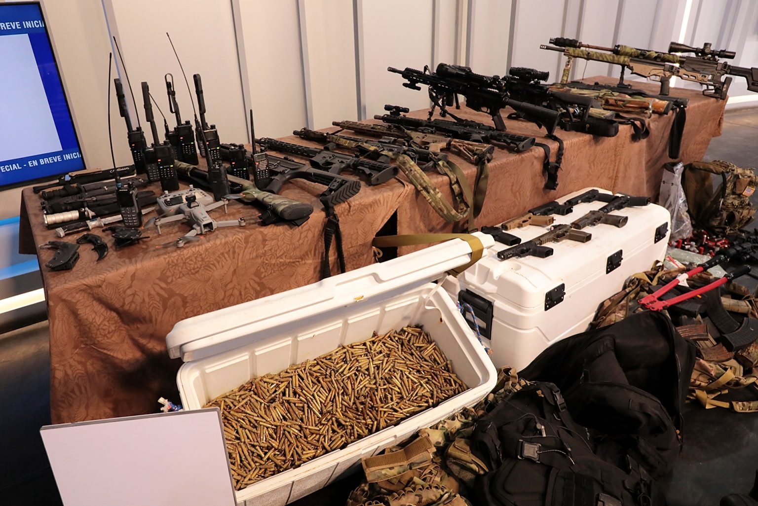Se contabilizaron 134 cargadores y un total de 12 846 municiones de diferentes calibres, entre ellos 5.56×45 mm y 7.62 mm (AKM). Una de las pistolas ocupadas tenía capacidad para perforar chalecos antibalas. Asimismo, fueron incautados un dron con dos cámaras, diez equipos de comunicación, cuchillos de comando, una planta eléctrica portátil, una cizalla para cortar candados y emblemas identificativos, entre ellos el del denominado movimiento contrarrevolucionario 30 de Noviembre y distintivos de “autodefensa del pueblo”.