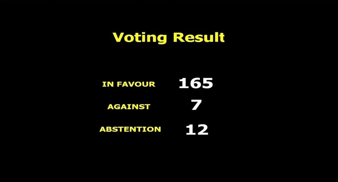 · 7 votos en contra (Estados Unidos, Israel, Hungría, Macedonia del Norte, Ucrania, Paraguay y Argentina)
