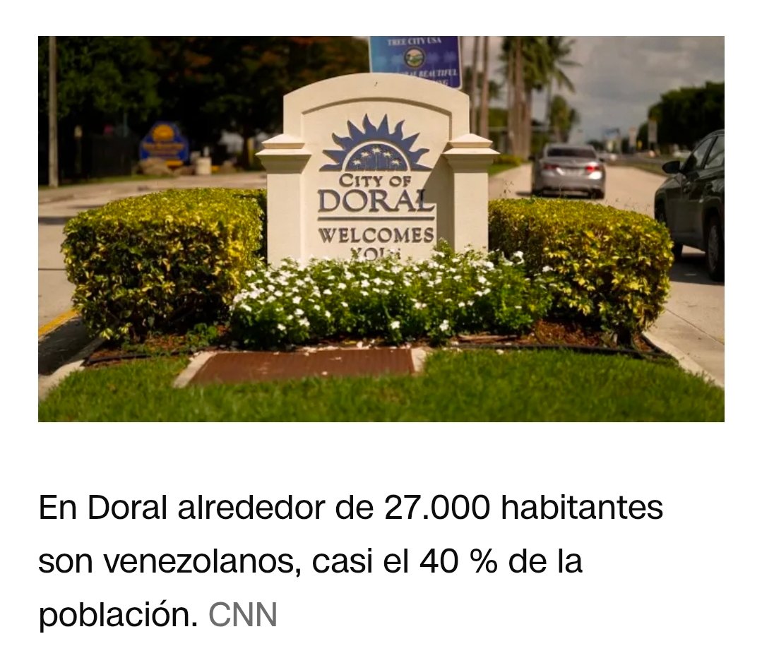 Conocido como “Doralzuela”, este suburbio del sur de Florida se inclinó en gran medida por Donald Trump en las elecciones de 2024. Familias enteras llegaron en los últimos años a esta zona de Miami, de poco más de 76.000 habitantes, buscando una vida mejor.