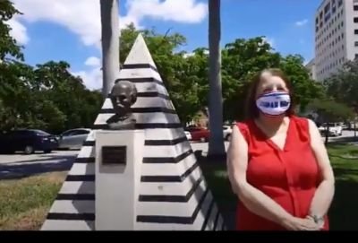 Elena Freyre en el Busto a José Martí a la entrada de City of Coral Gables en Miami