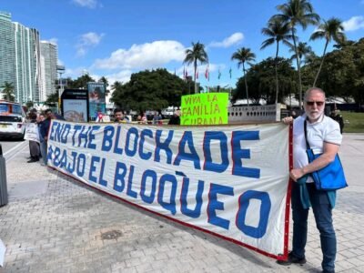 Durante la concetracion de cubanos, norteamericanos y de otras naciones, los participantes corearon unanimenente ¡abajo el bloqueo criminal de EEUU a Cuba! portando cárteles donde se leian reclamos y pedidos en letras GRANDES.