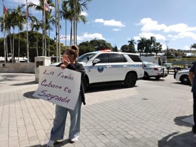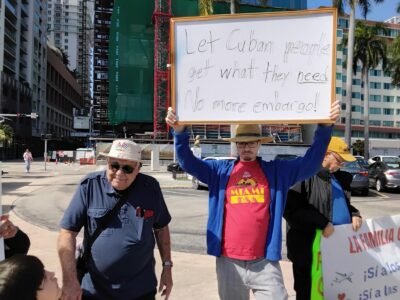 Los manifestantes exigieron que se respete la soberanía de todas aquellas naciones que decidan ayudar a Cuba y solidarizarse con el pueblo cubano en las actuales circunstancias.