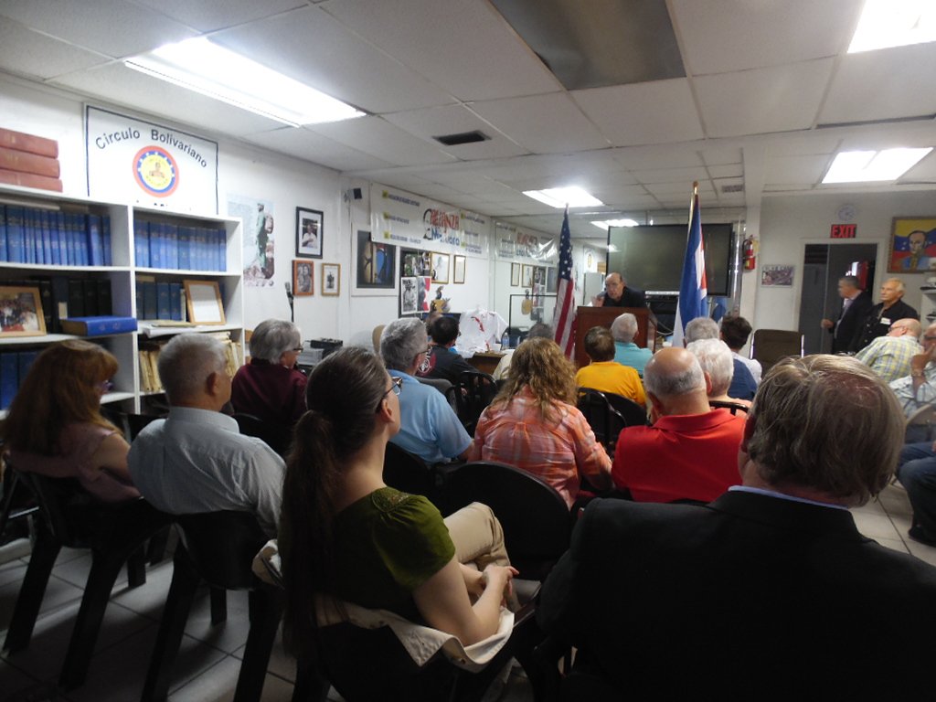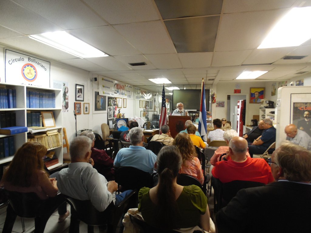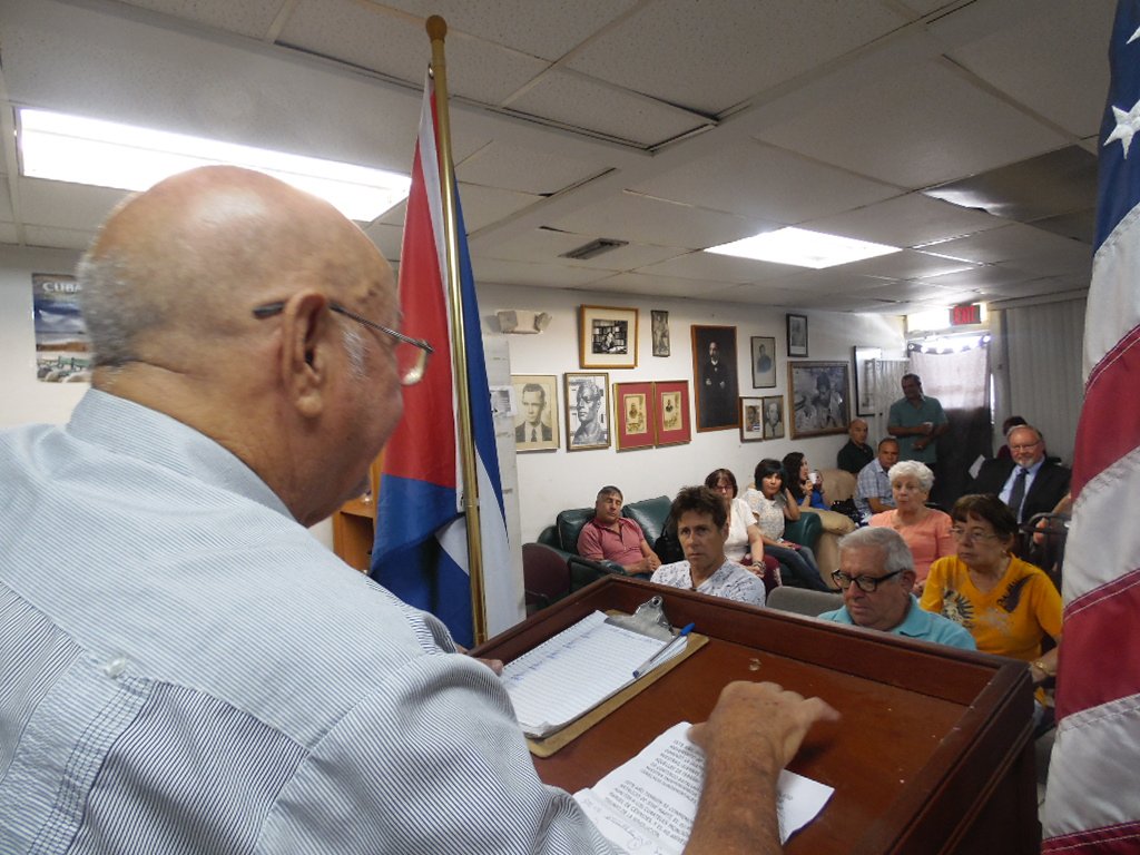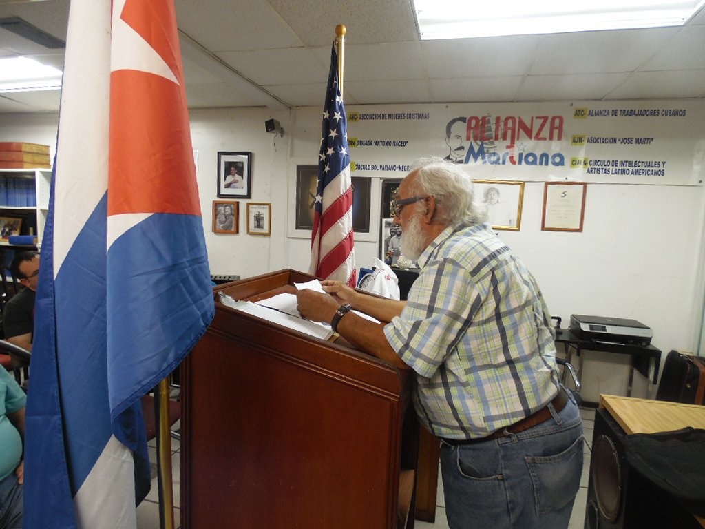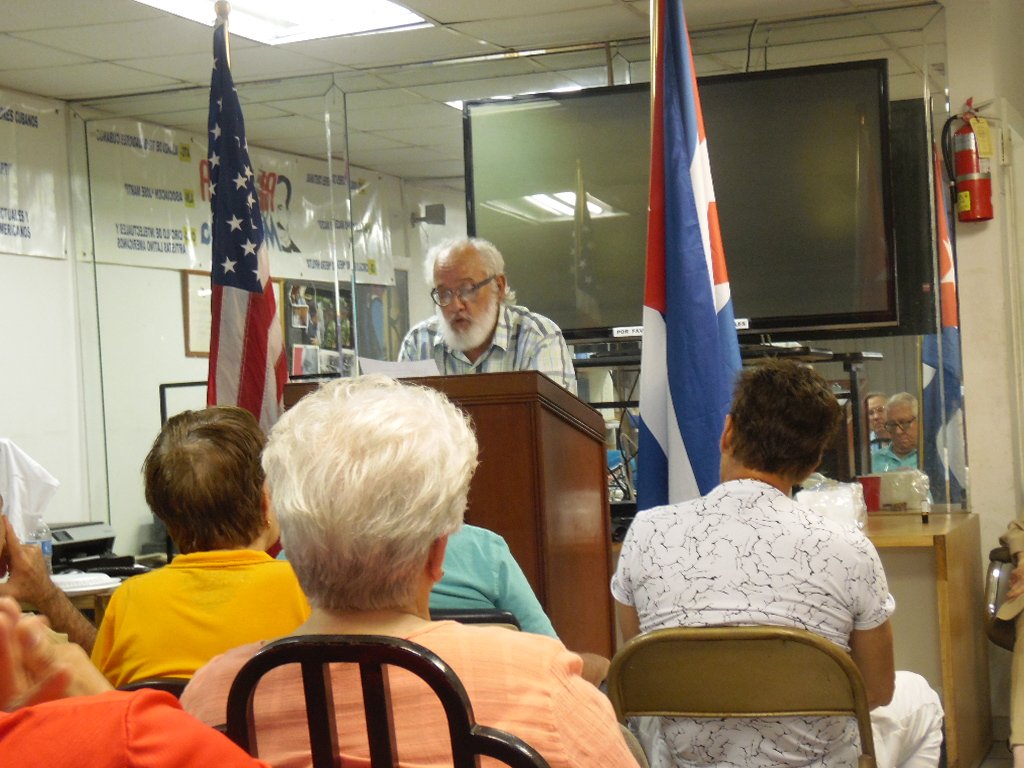 Oradores en el acto fueron: Damián Díaz, presidente de la Alianza Martiana, Max Lesnik, director de Radio Miami y dirigente de la Alianza, Steven Wershell, dirigente del Partido Socialista de los Trabajadores, Elena Freyre, presidenta de Fundación pro Normalización de las Relaciones EE.UU. y Cuba, y Andrés Gómez, Coordinador de la Brigada
