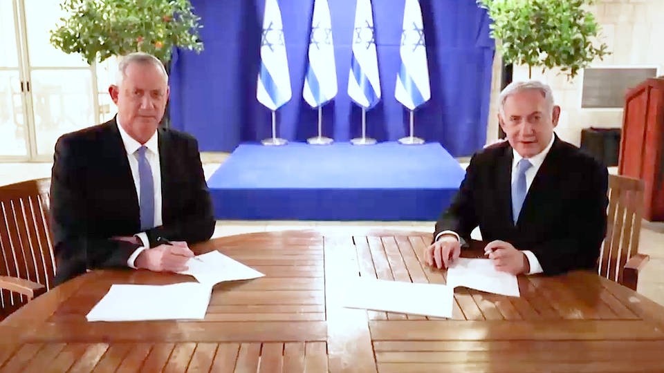 El primer ministro israelí, Benjamin Netanyahu, y su ex opositor político Benny Gantz firmaron un acuerdo el lunes para formar un Gobierno nacional de emergencia. El acuerdo pone fin a un estancamiento político prolongado después de que ninguno de los dos candidatos recibiera suficientes votos para adjudicarse la victoria después de tres elecciones realizadas durante el año pasado. Gantz había dicho previamente que no iba a trabajar con Netanyahu. Netanyahu ha sido acusado penalmente por tres casos de corrupción. Su juicio fue pospuesto para el próximo mes debido al brote de coronavirus.