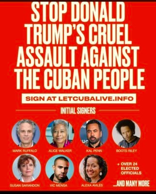 Artistas y creadores norteamericanos le estan diciendo que PARE YA el acoso multiplicado de no permitir que buques con combustible desde otras naciones, puedan llegar a Cuba.